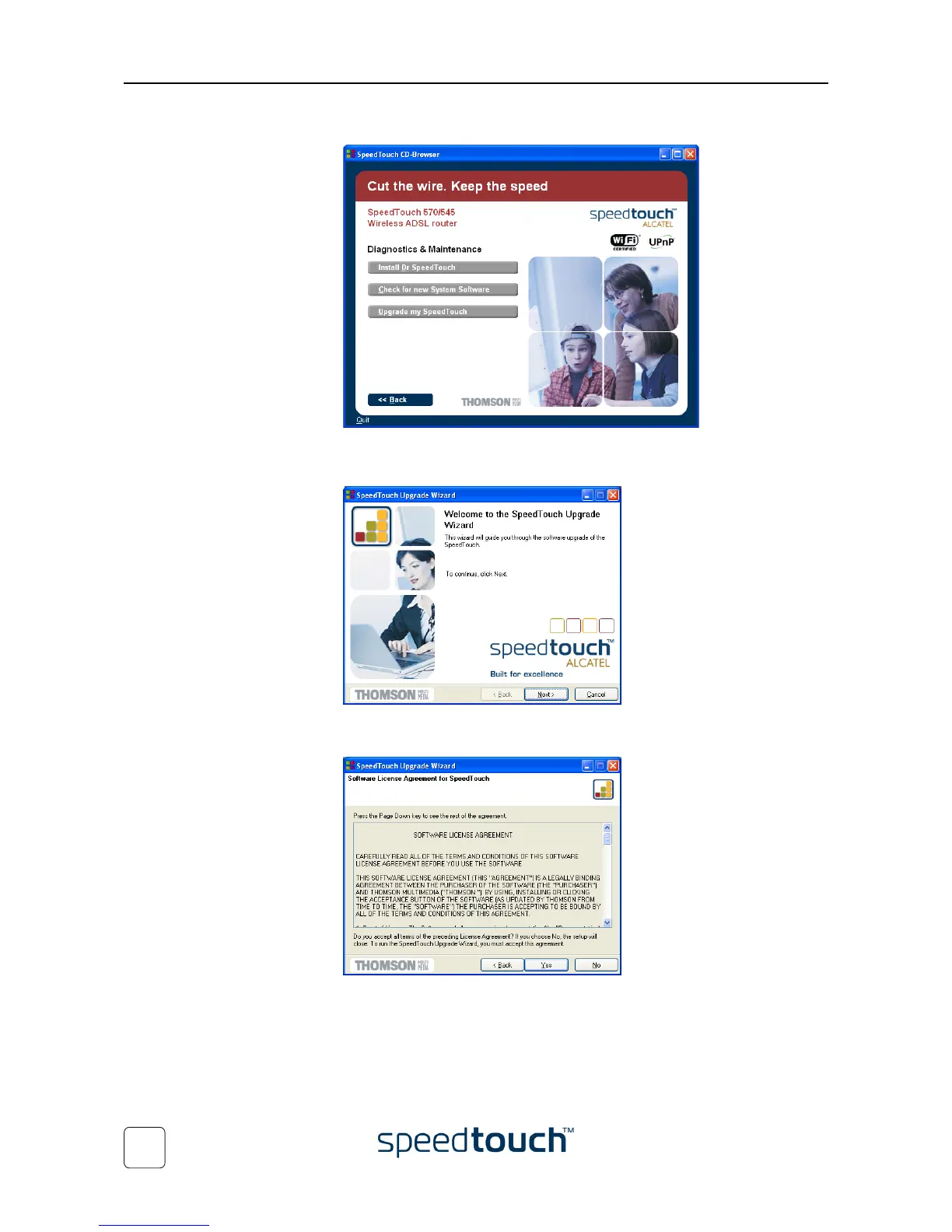 5 The Welcome to the SpeedTouch™ Upgrade Wizard window appears: