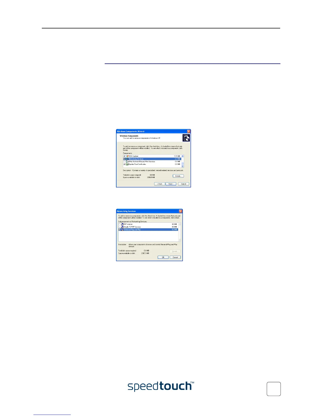 Adding UPnP™ If you are running Microsoft Windows XP, it is recommended to add the UPnP™