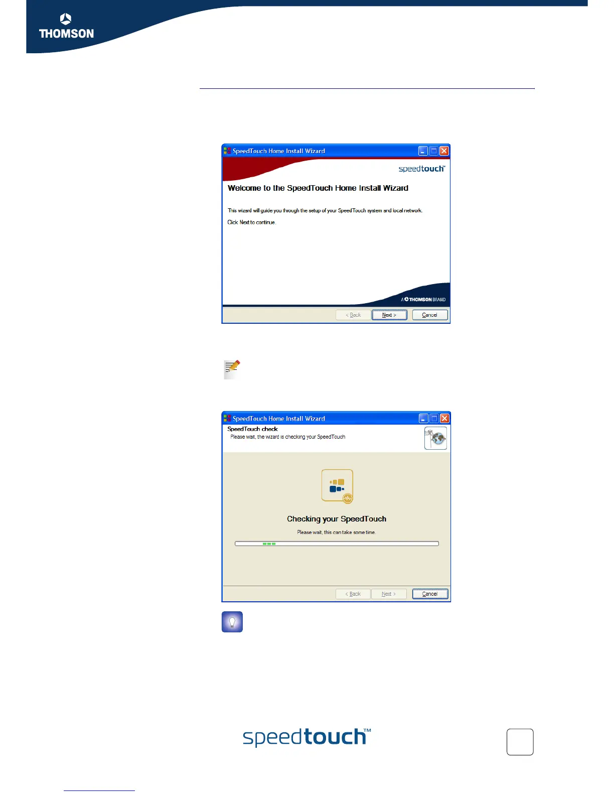 The SpeedTouch™ Home Install Wizard checks your system and invites you to