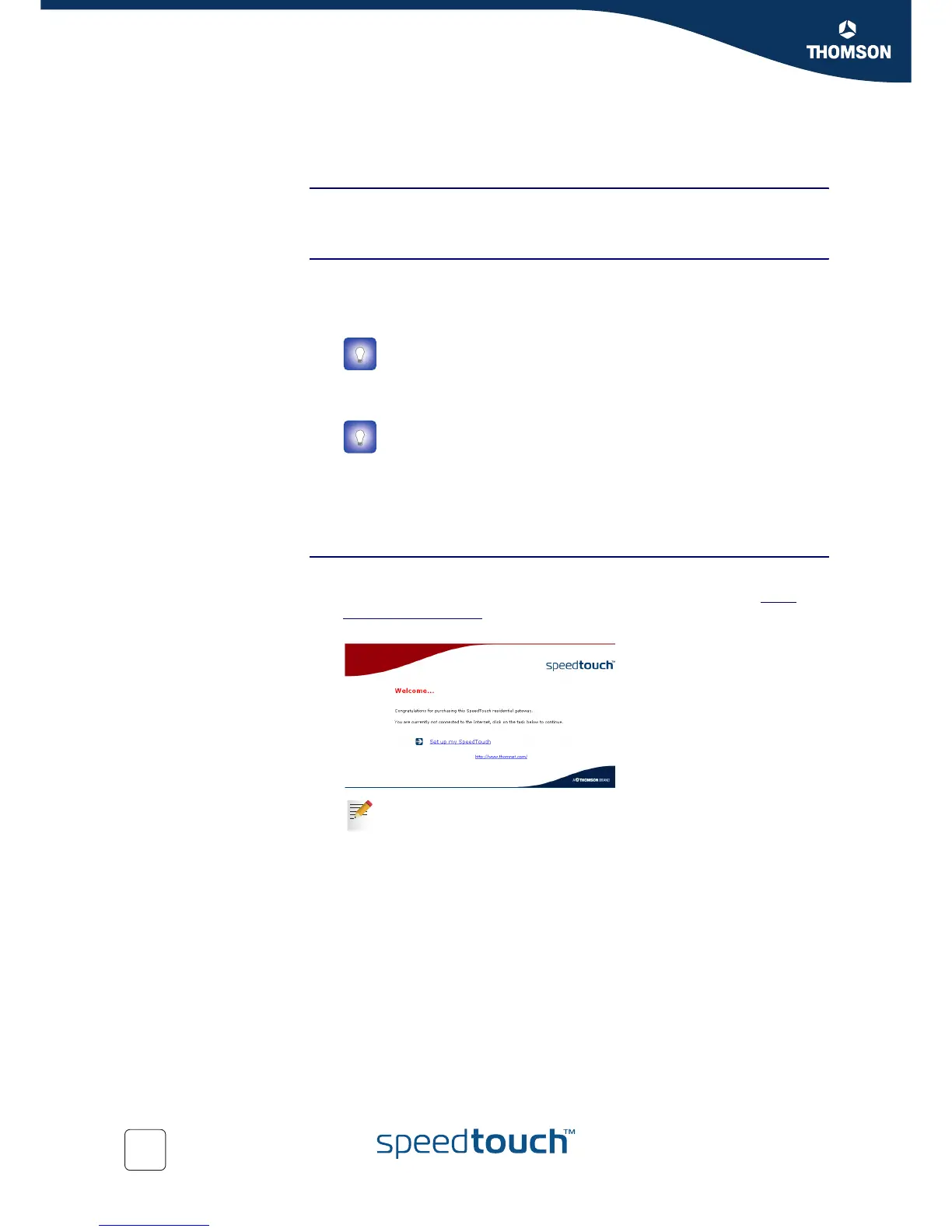 will be automatically redirected to the SpeedTouch™ Welcome page.
