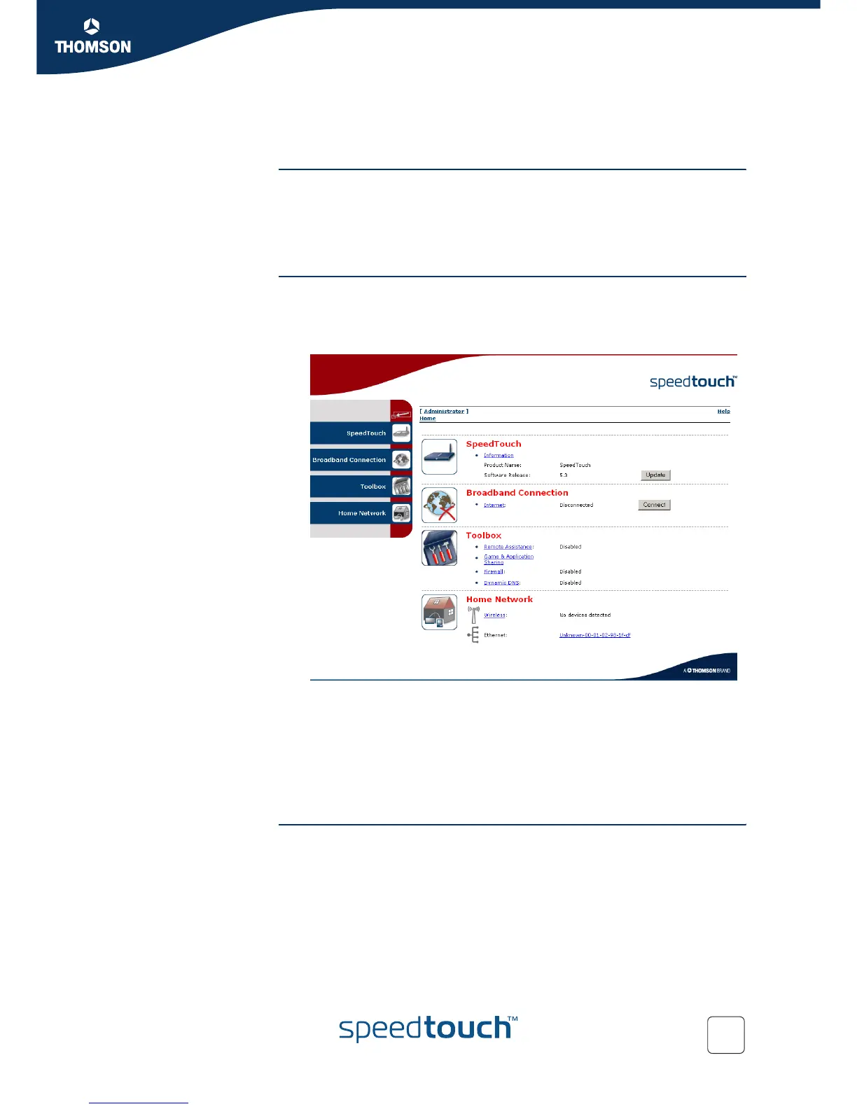 1 Open a web browser on your computer and browse to the SpeedTouch™ web