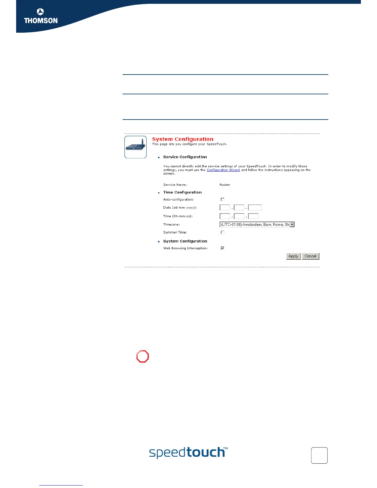 Select Auto-configuration if you want the SpeedTouch™ to use a time
