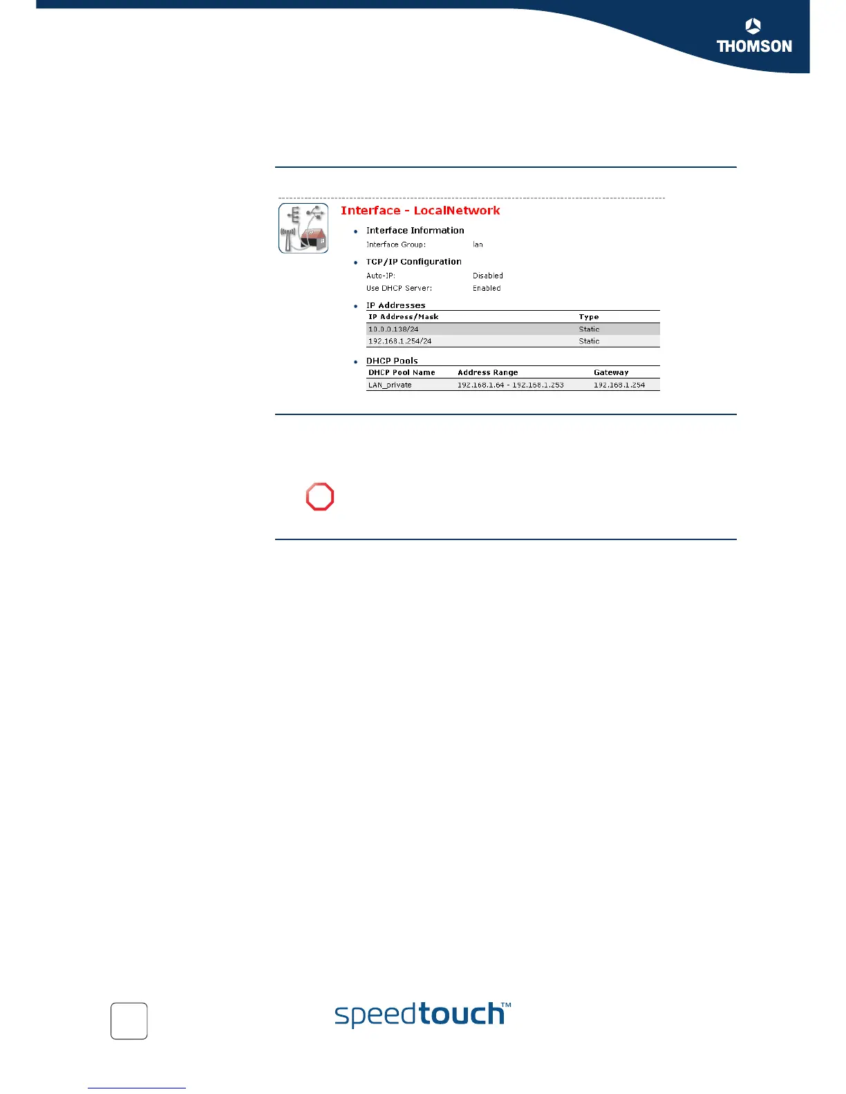 address of the SpeedTouch™ uses the same subnet as the IP addresses