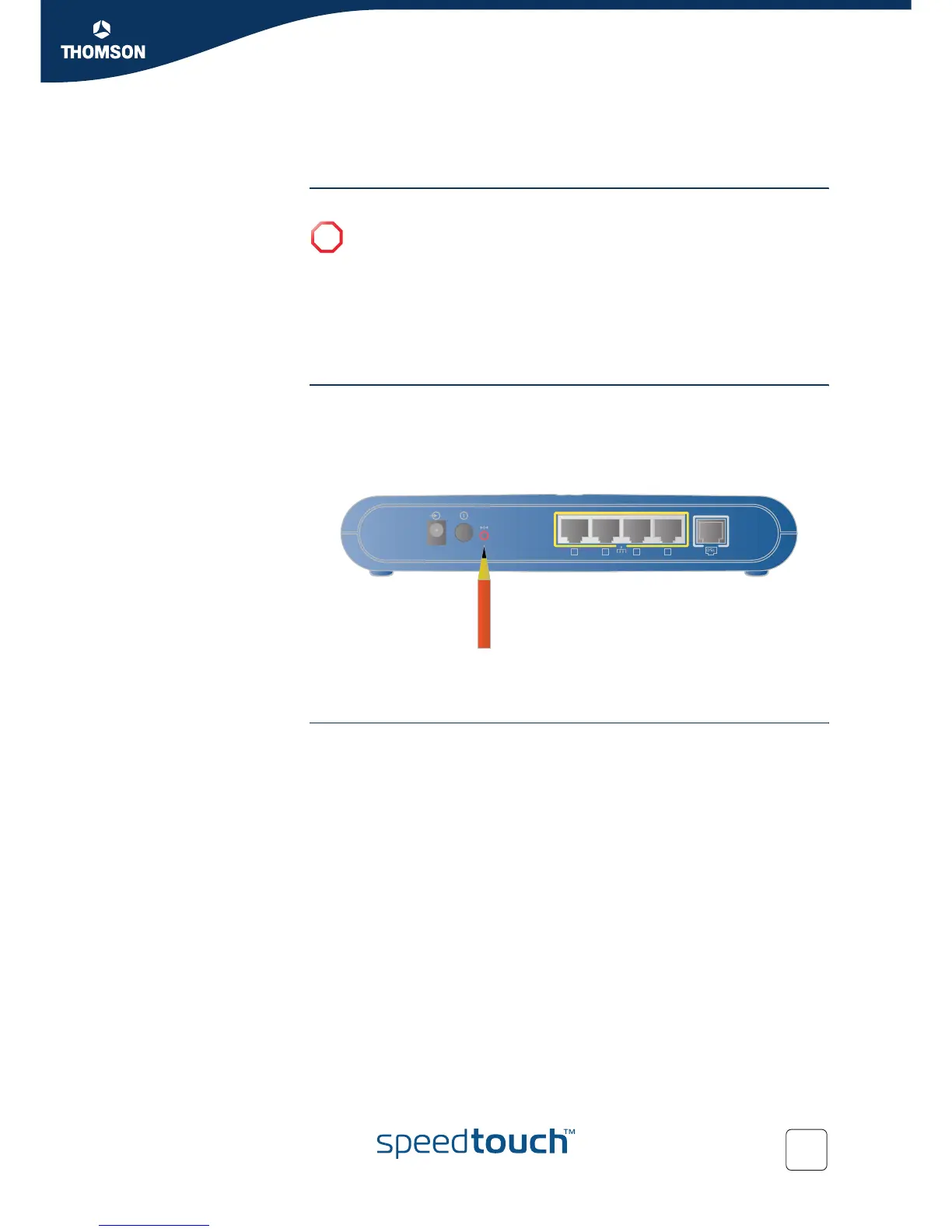 Therefore, after the reset, a reconfiguration of your SpeedTouch™ will be needed.