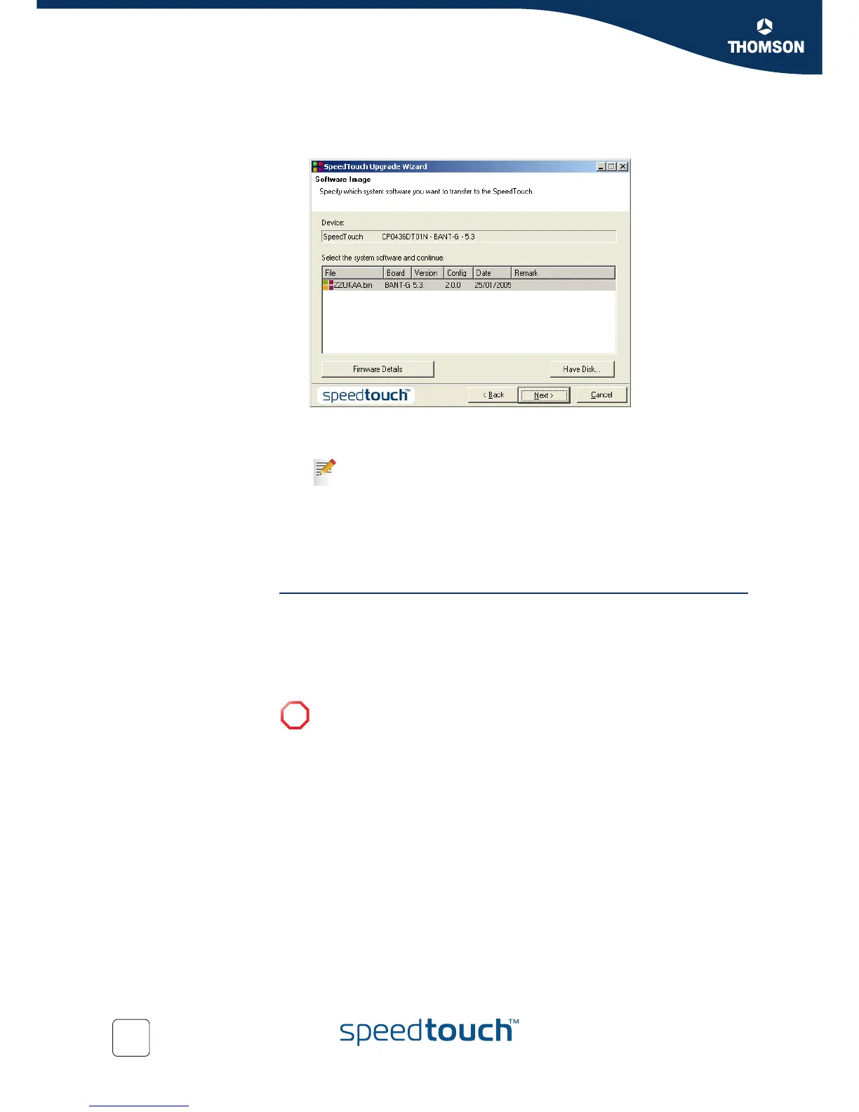 downgrade the SpeedTouch™ by uploading an older system software than the