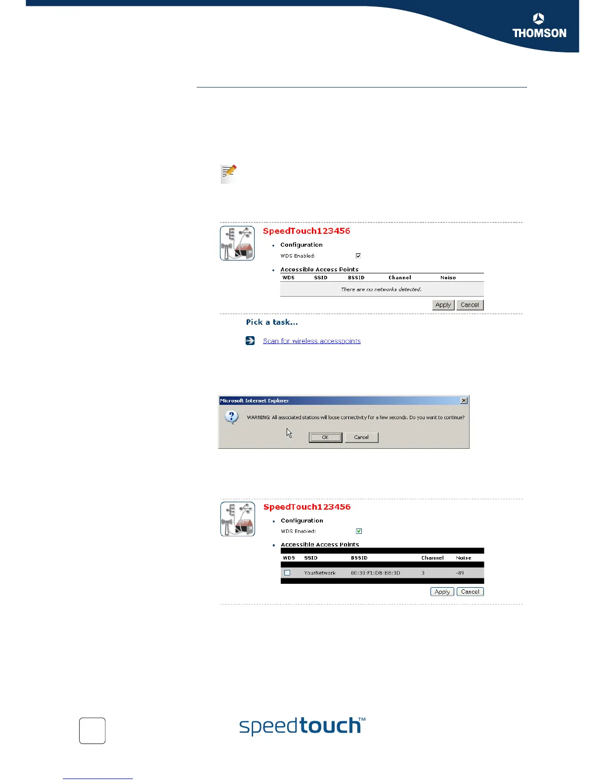 9 The SpeedTouch™ will scan for access points on the same radio channel.