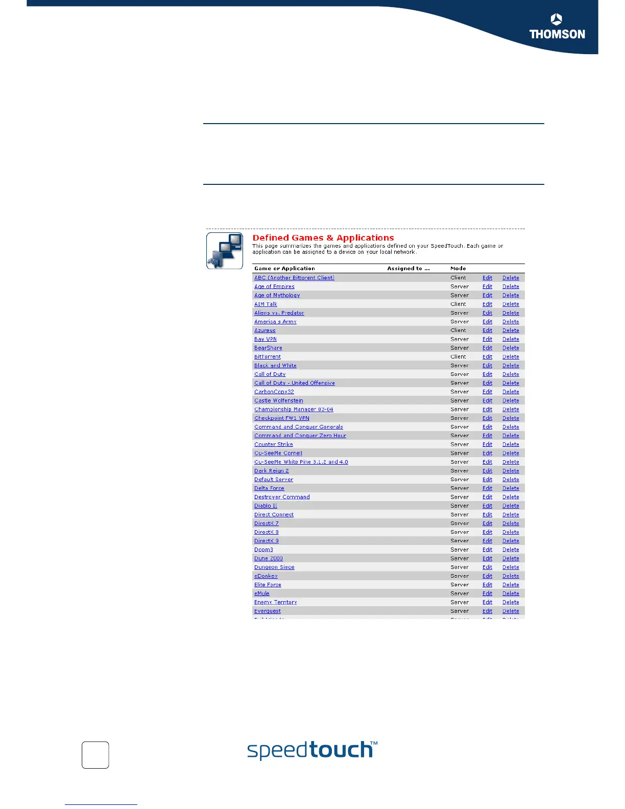 SpeedTouch™. Each game or application can be assigned to a device on your local