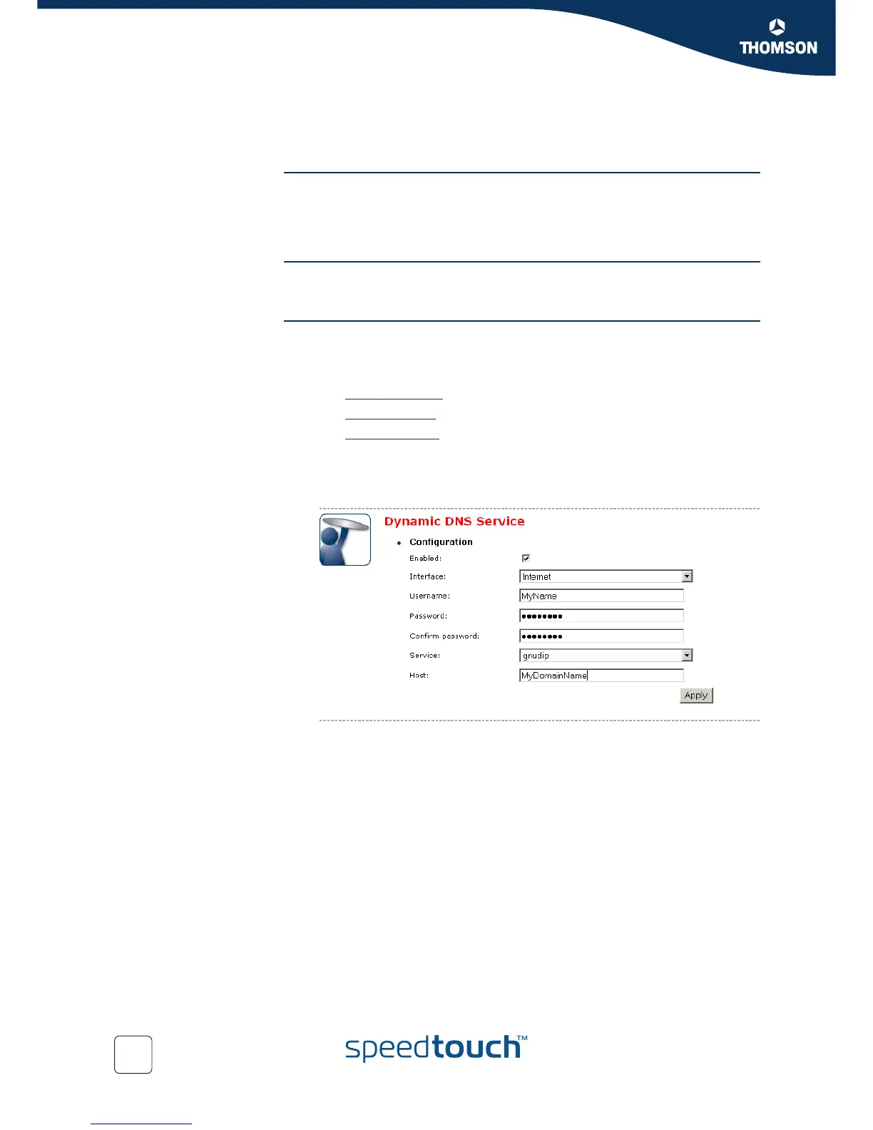 Configure The Configure page allows you to assign a Dynamic DNS host name to a broadband