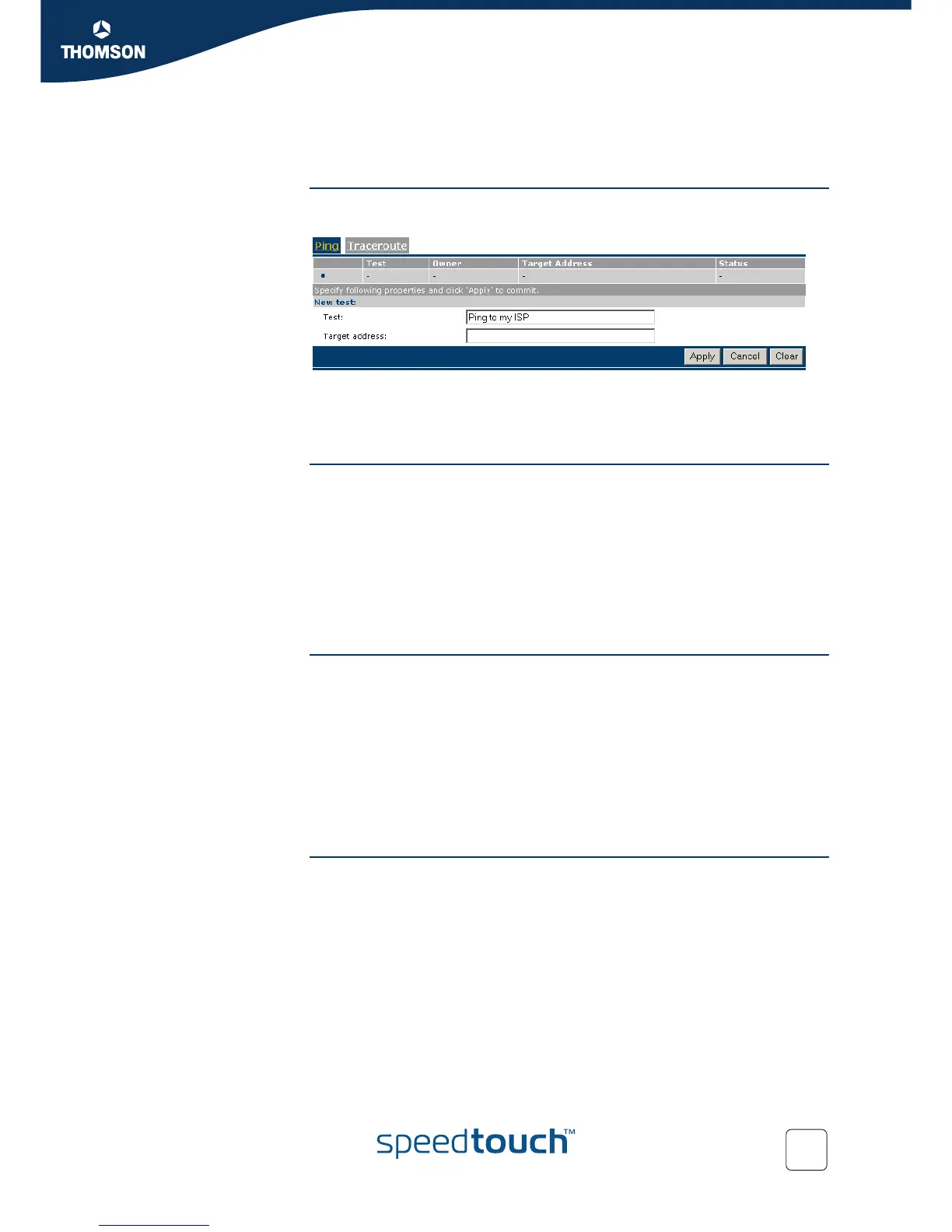 By default no ping tests are configured. To add a ping test see Add/delete a ping