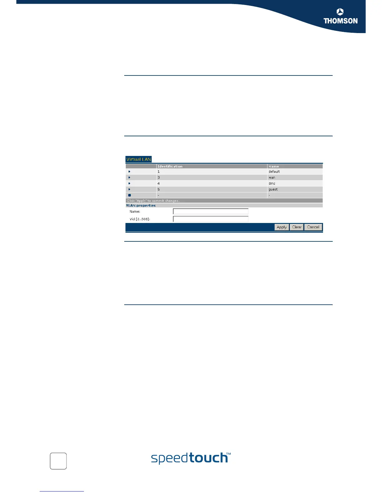 the SpeedTouch™. It also allows you to add new VLANs, and delete existing VLANs.