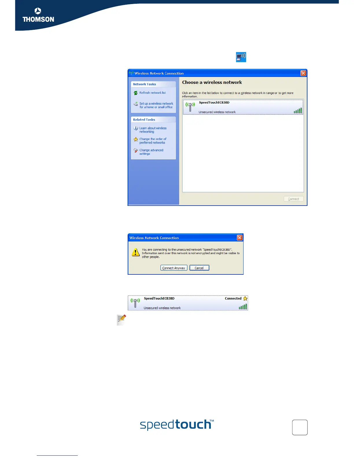 4 Your computer is now connected to the SpeedTouch™ wireless network.