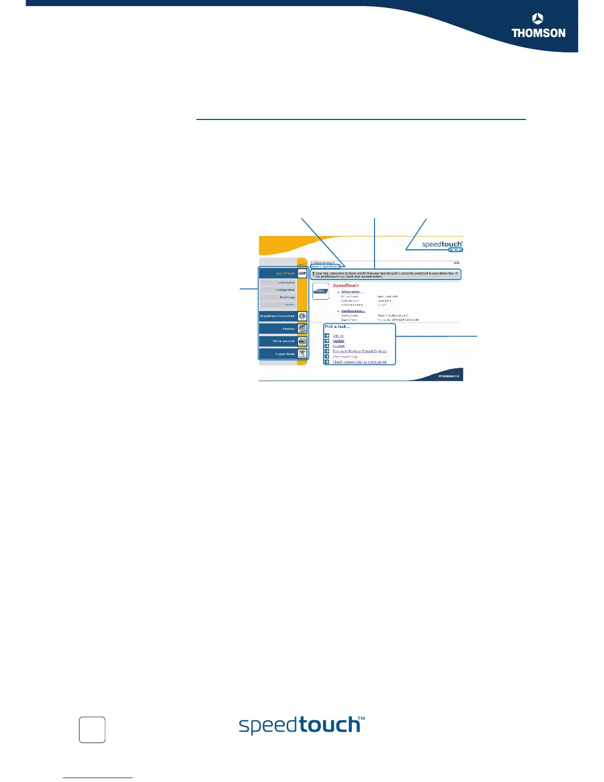 Navigation components The SpeedTouch™ web interface consists of following components: