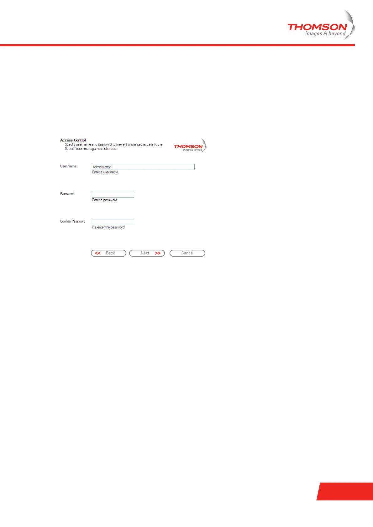 2 Provide a user name and password to protect your Thomson Gateway from unauthorised access. Each