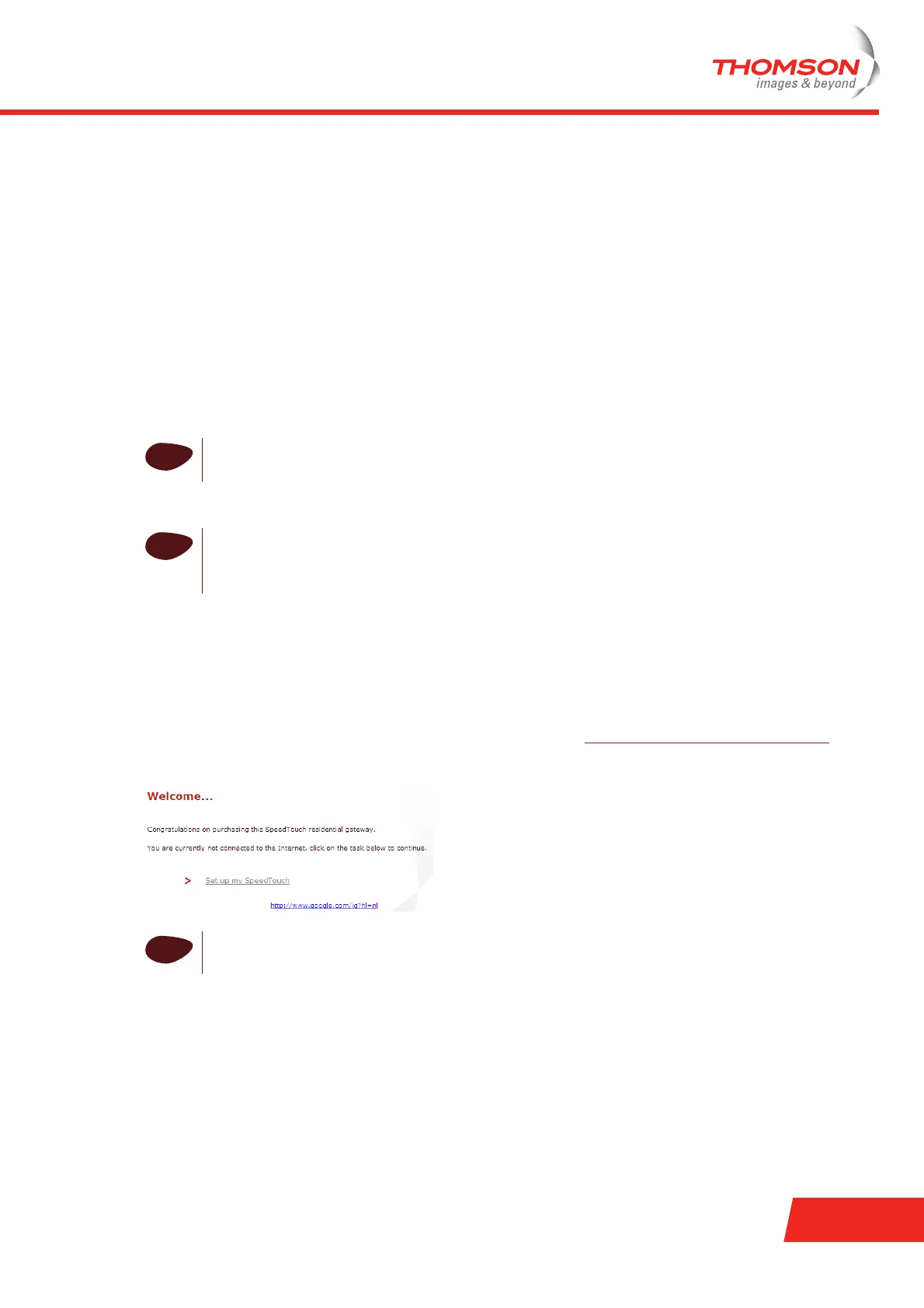 As long as no Internet connection has been set up, you will be automatically redirected to the Thomson