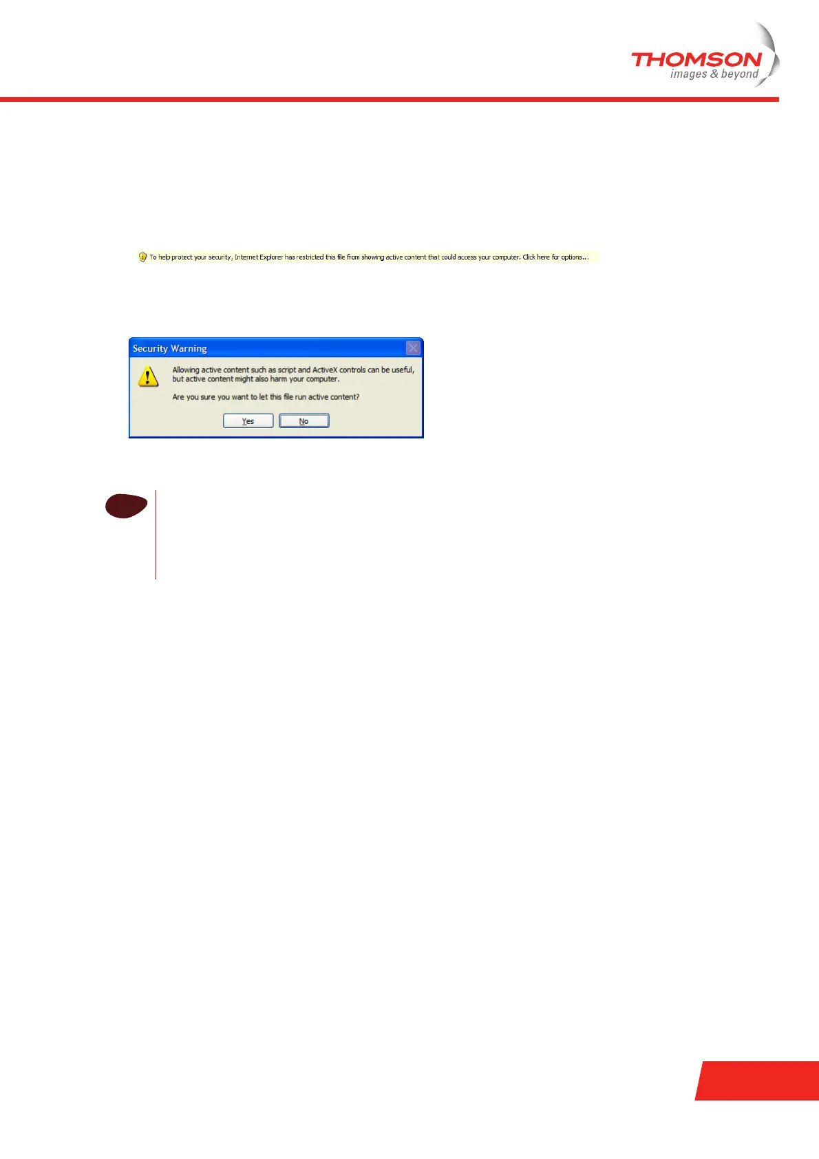 1 In Internet Explorer, the following message will appear in the Information Bar: