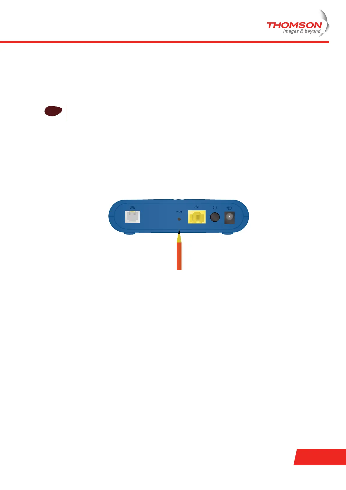 2 Use a pen or an unfolded paperclip to push the recessed reset button on the back panel. The reset button