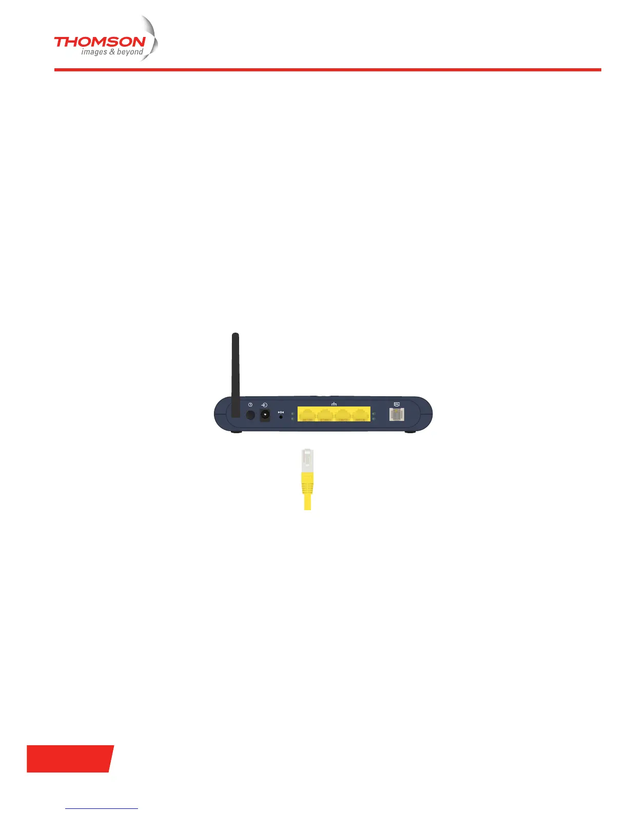 1 Connect one end of the Ethernet cable to (one of the) yellow Ethernet port(s) of your Thomson Gateway: