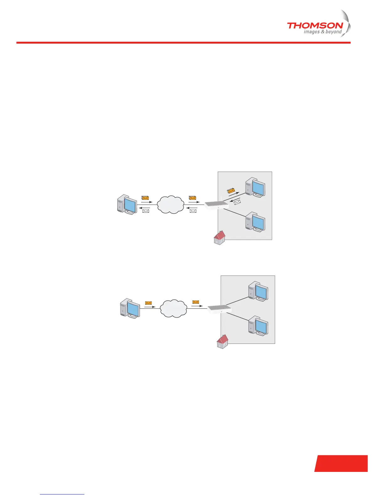 the initial message will come from the internet and the Thomson Gateway has to decide to which computer