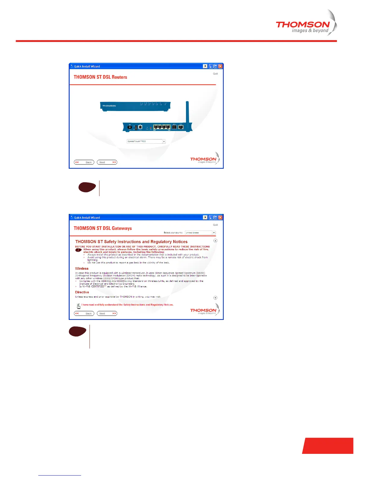 4 Subsequent screens guide you through the preliminary hardware setup of your Thomson Gateway.