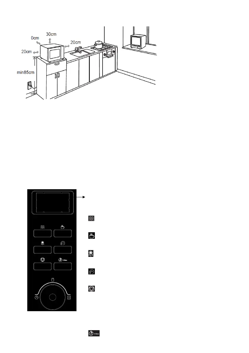 • A altura mínima do espaço livre acima da superfície superior do micro-ondas são 30 cm.
