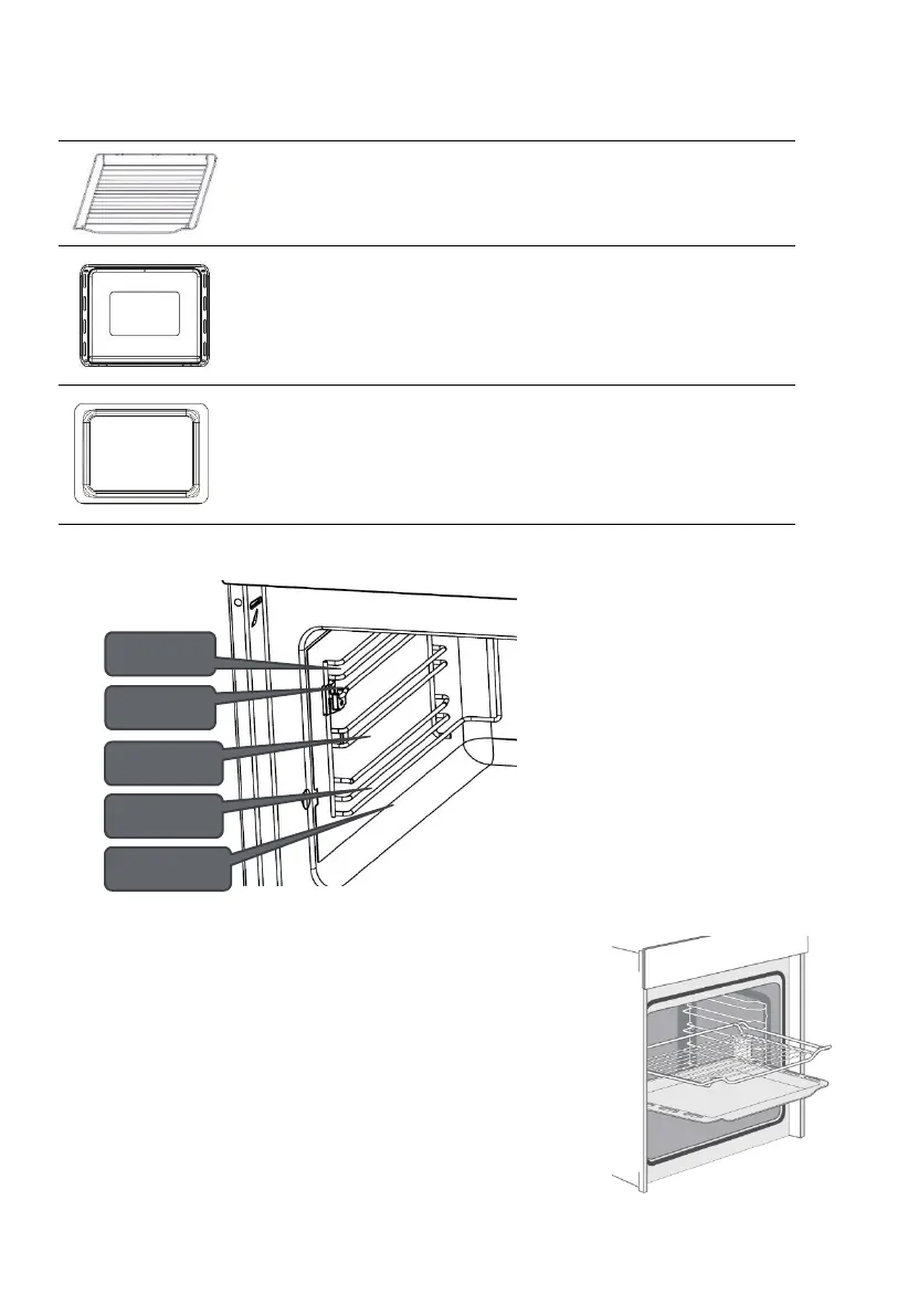 Het rooster en de email bakplaat kunnen op 5 verschillende niveaus