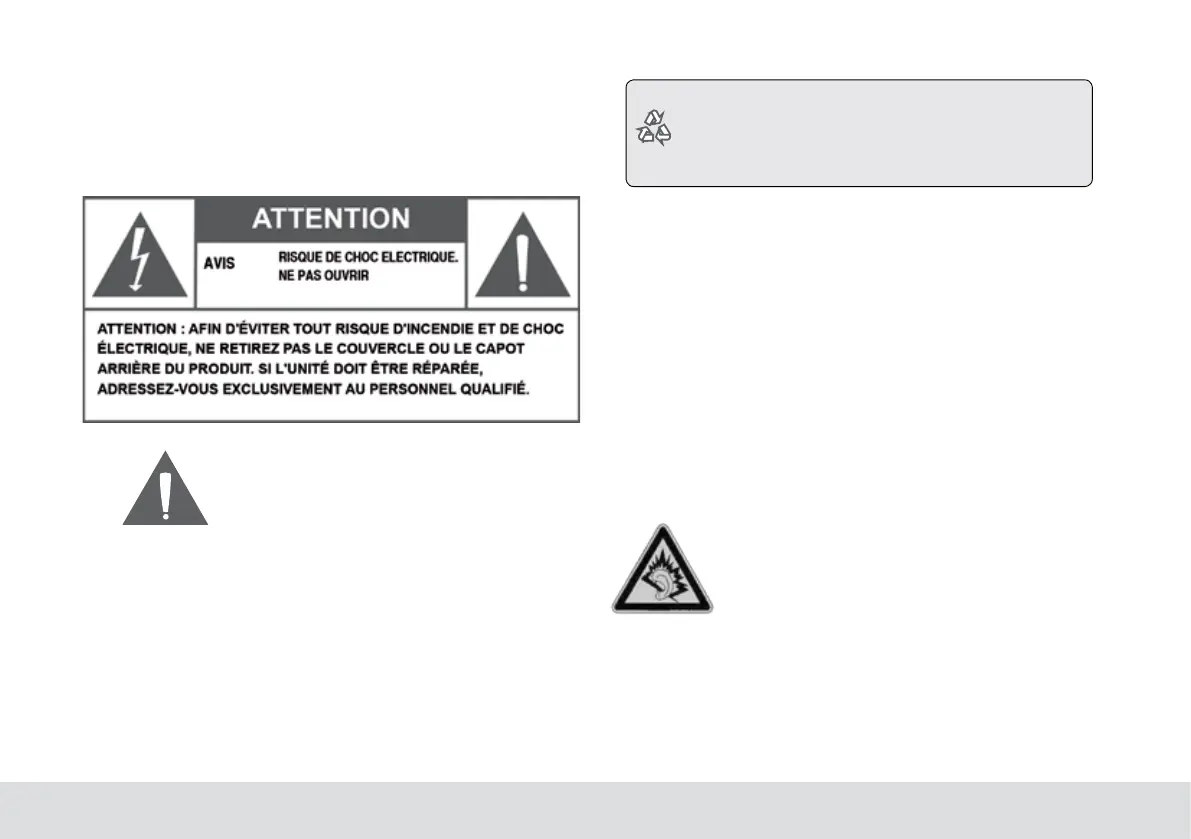 choc électrique, n’exposez pas cet appareil à la pluie ou à l’humidité.