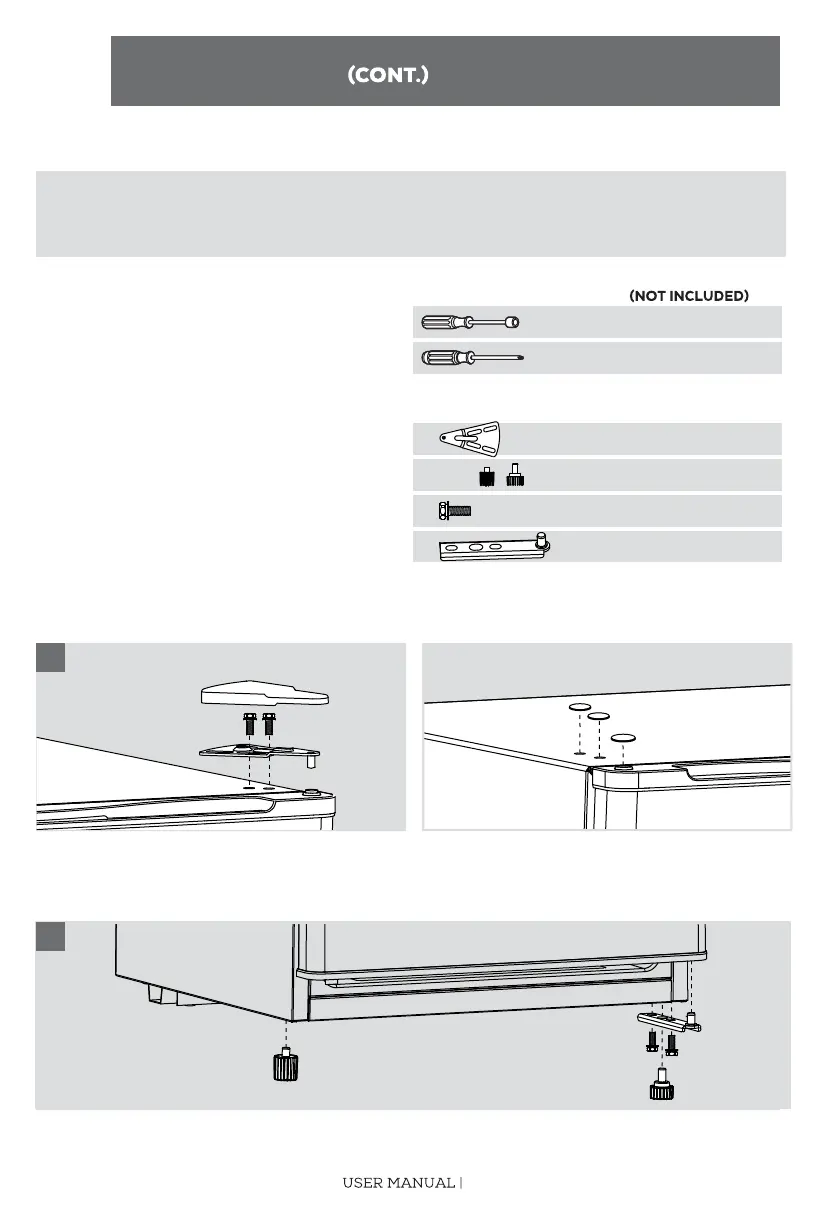 Remove the left leveling foot, the bottom hinge bracket by unscrewing the mounting screws.