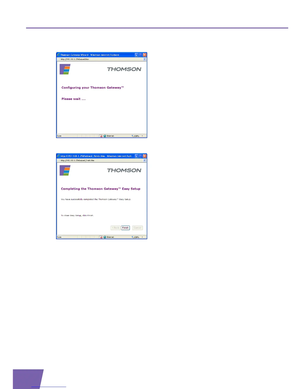 6 As soon as the Easy Setup wizard completed the update of the Thomson Gateway configuration, the