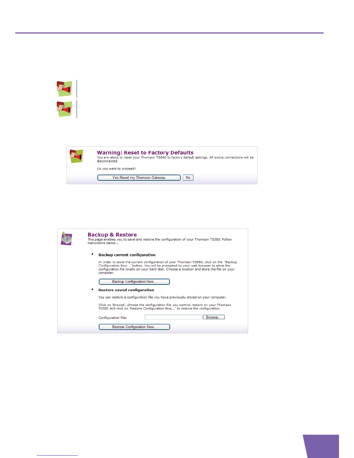 The Reset to Factory Defaults page allows you to return to the initial configuration of your Thomson