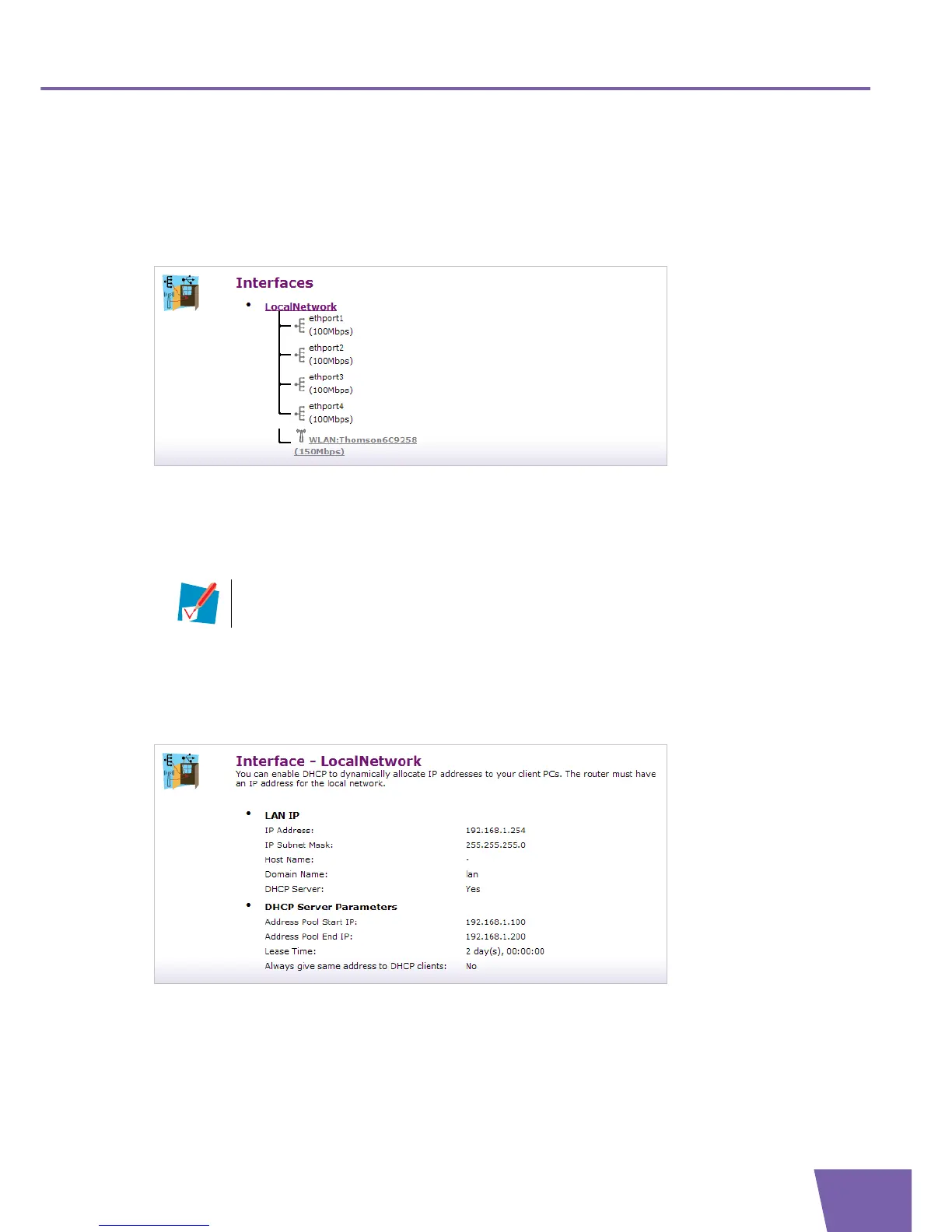 The Interfaces page gives you an overview of the interfaces available on your Thomson Gateway.