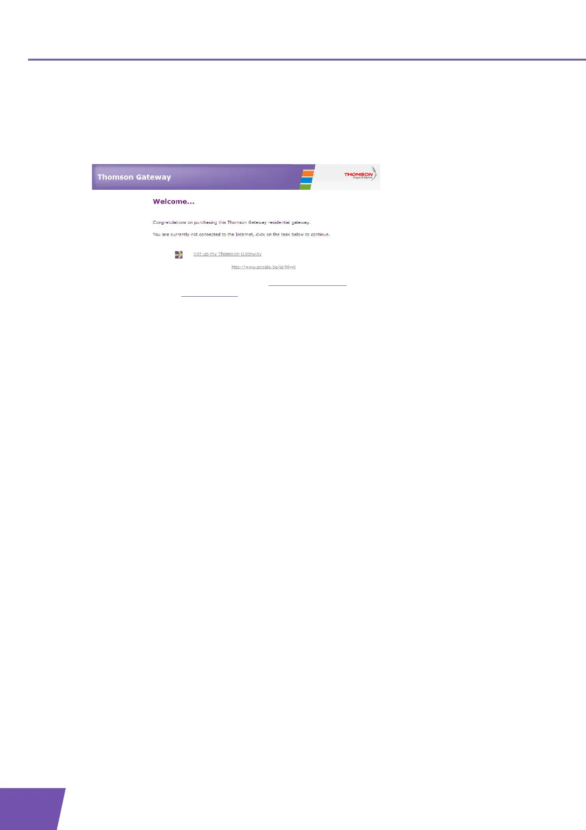2 The Thomson Gateway informs you that you have not yet configured your Thomson Gateway.