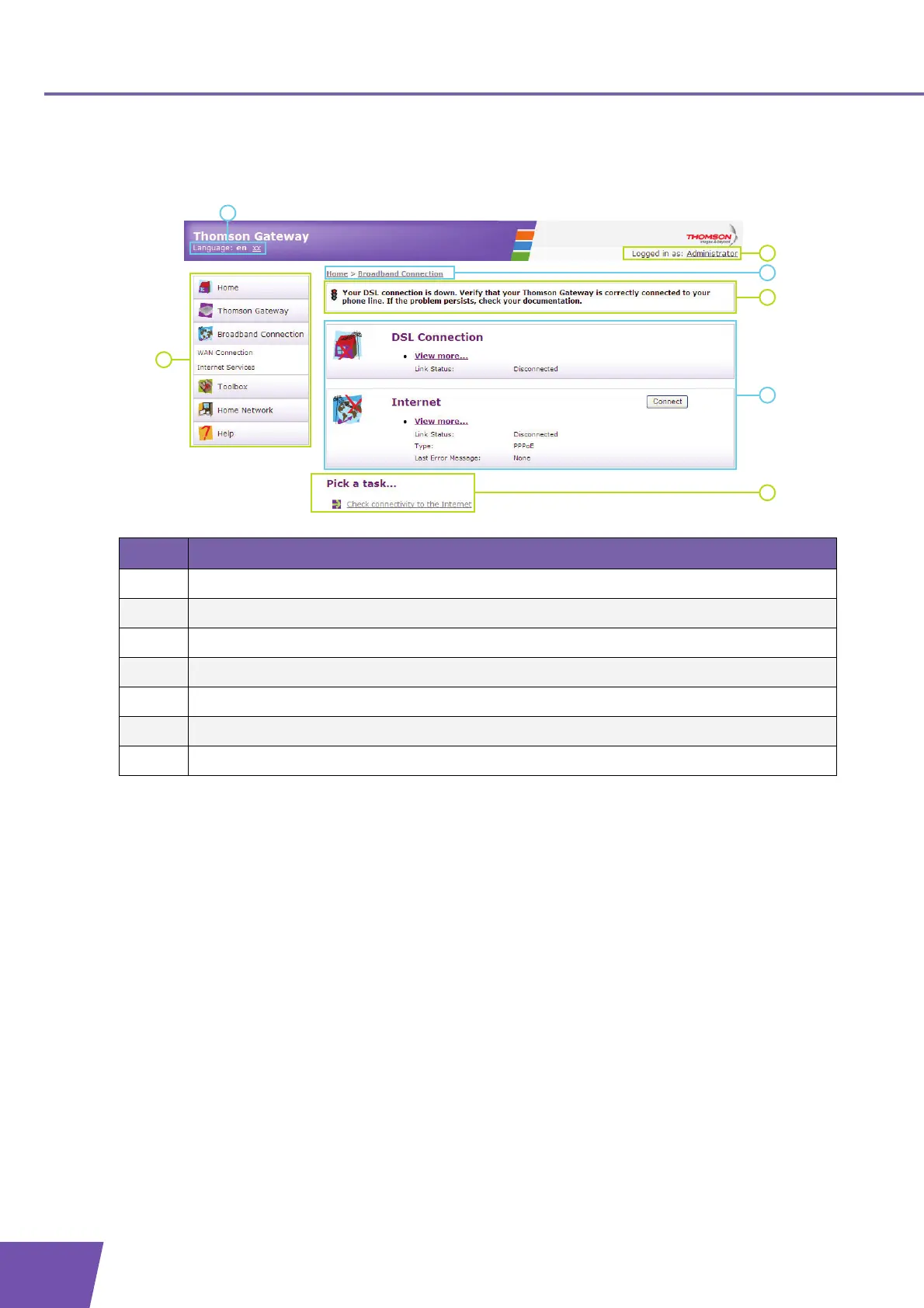 Allows you to configure the network services and Internet security settings of your Thomson Gateway.