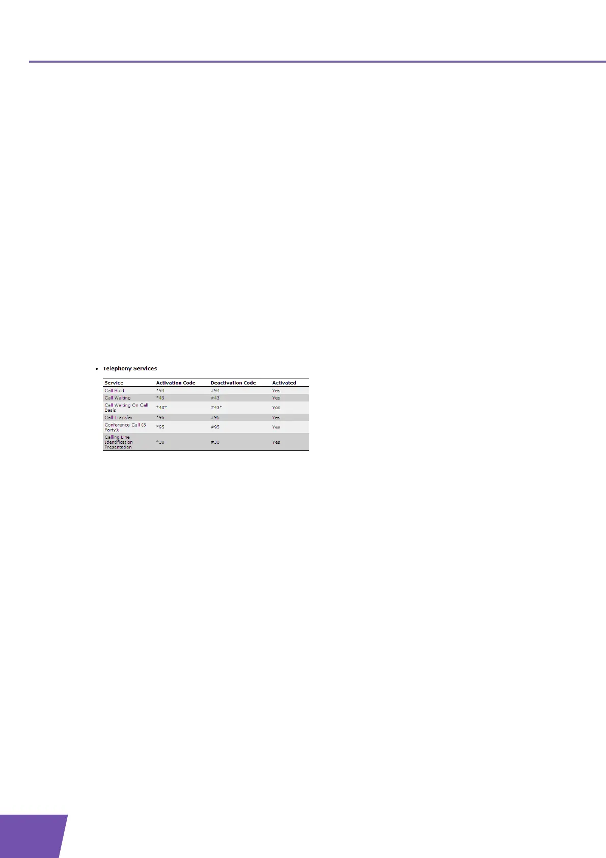 5 In the Telephony Services table, you can find the activation and deactivation codes.