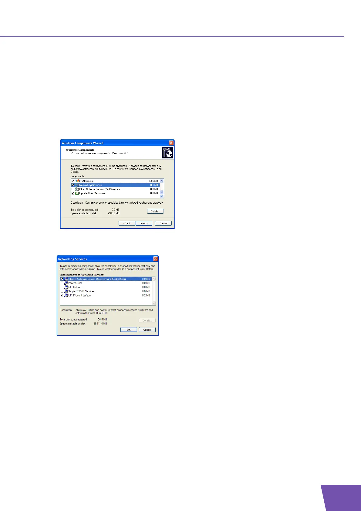 6 Click Next to start the installation and follow the instructions in the Windows Components Wizard.