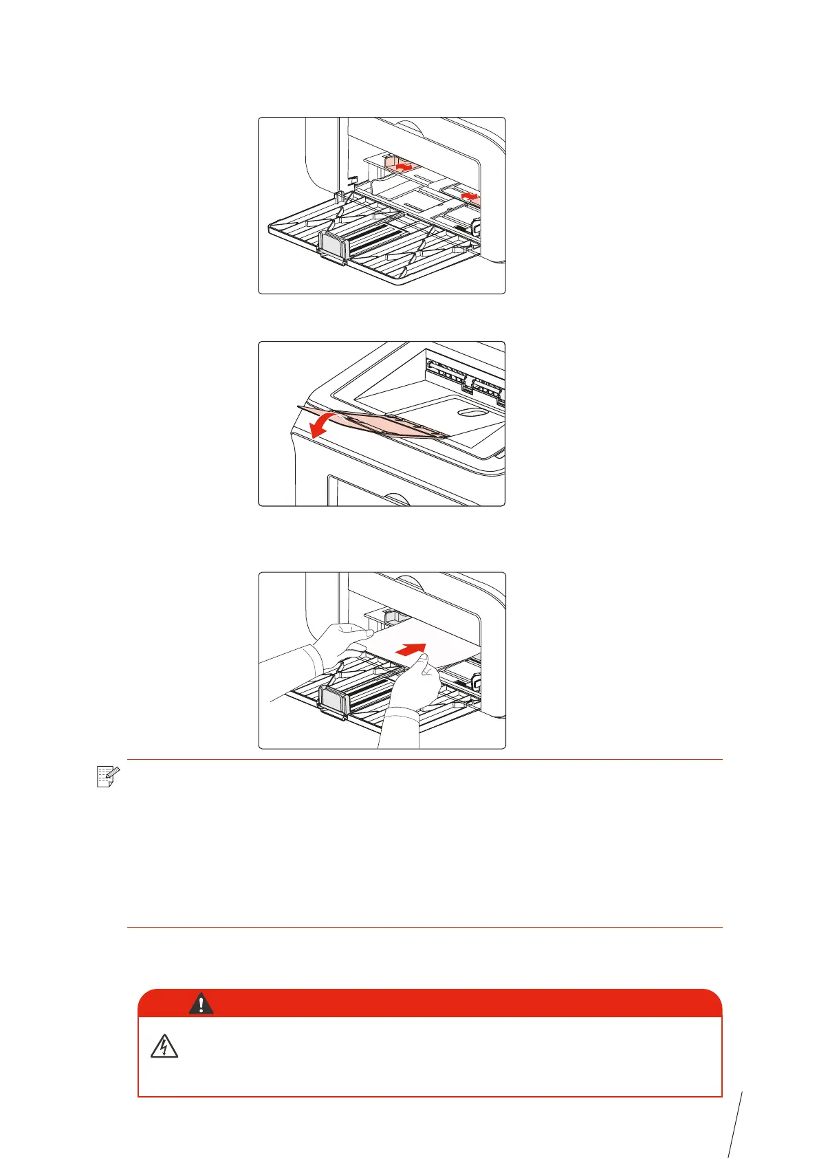 • Load the paper into the manual feeder tray with the print-side up. When loading,
