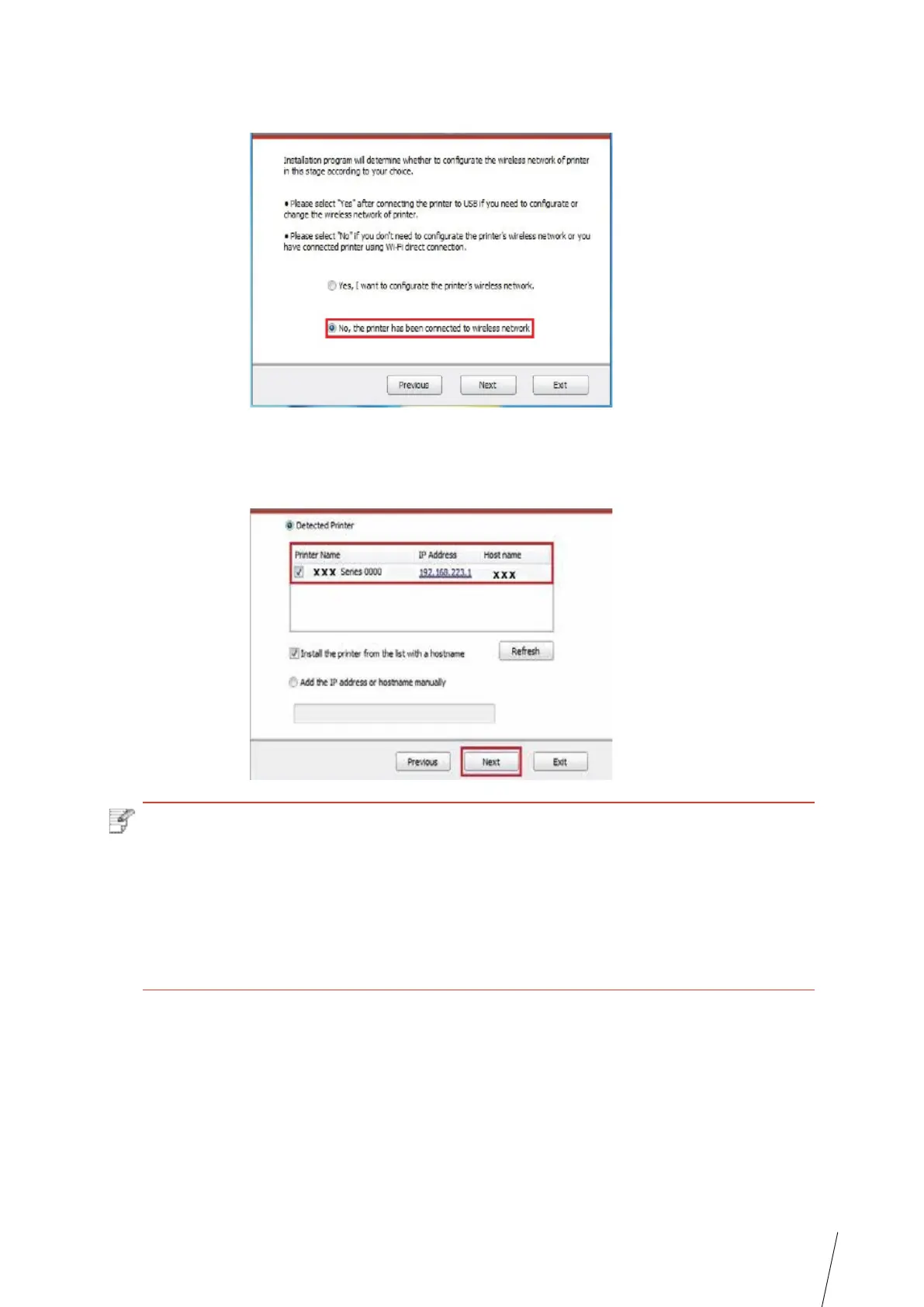 Note: • If the printer you need to connect is not in the list of printers searched, please click