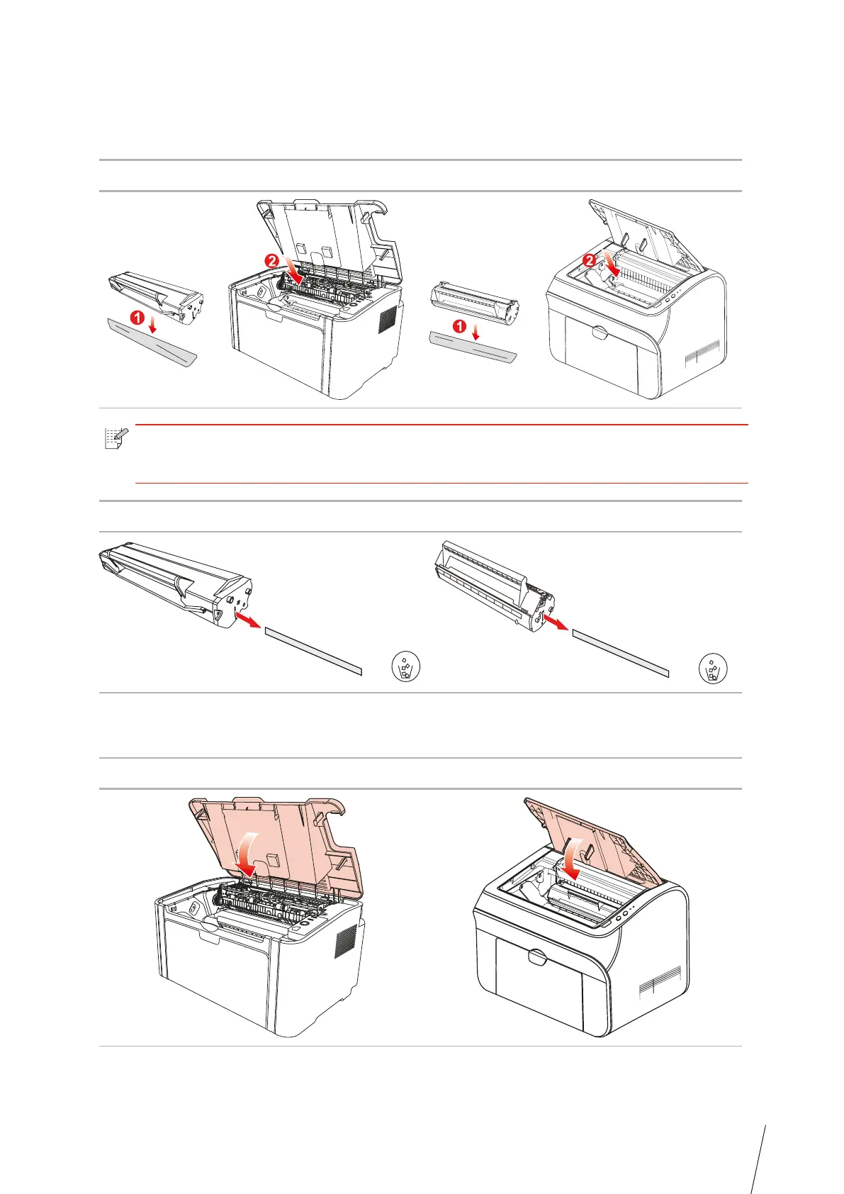 Note: • Check whether there is any seal on it before installing the laser toner cartridge