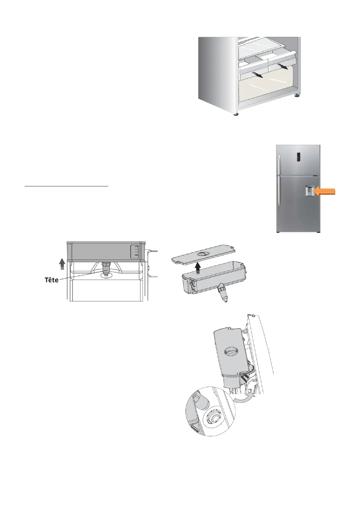 1. Retirezleréservoird'eauducompartimentduréfrigérateurendévissantla