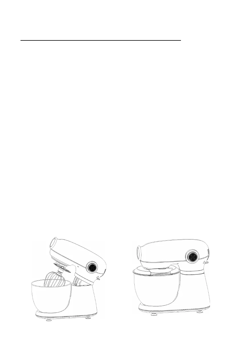 Um den Kopf abzusenken und den Mixer/Knethaken/Rührer in die