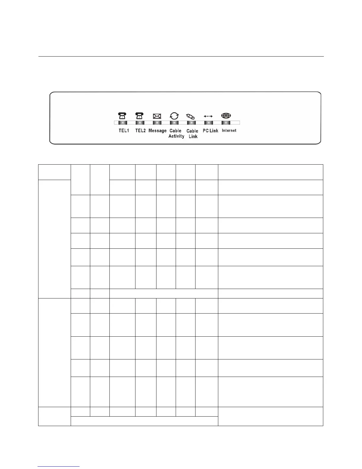 The LEDs on the front panel are described in the table below (from left to right):