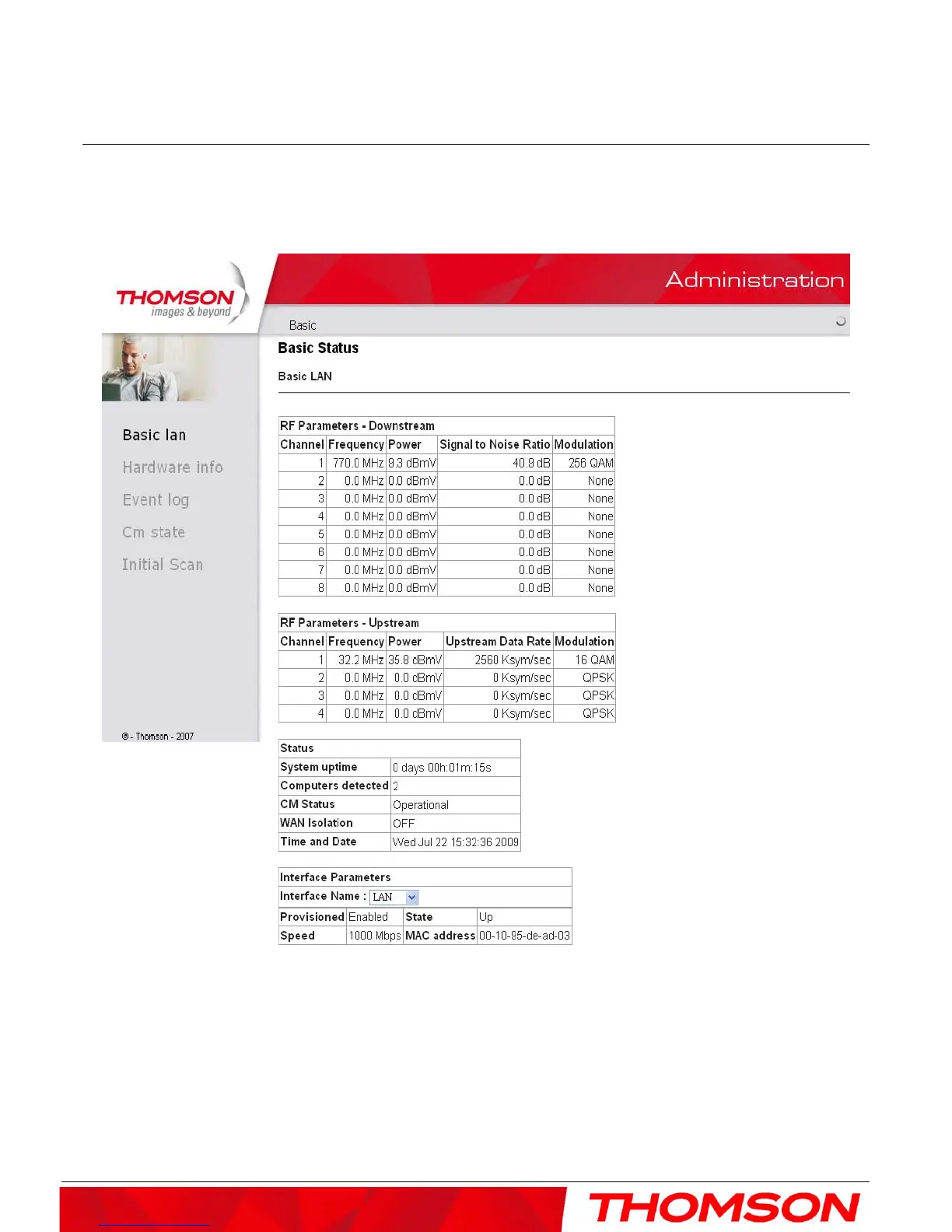 THOMSON THG570 - Basic Status Web Page Group; Basic Lan
