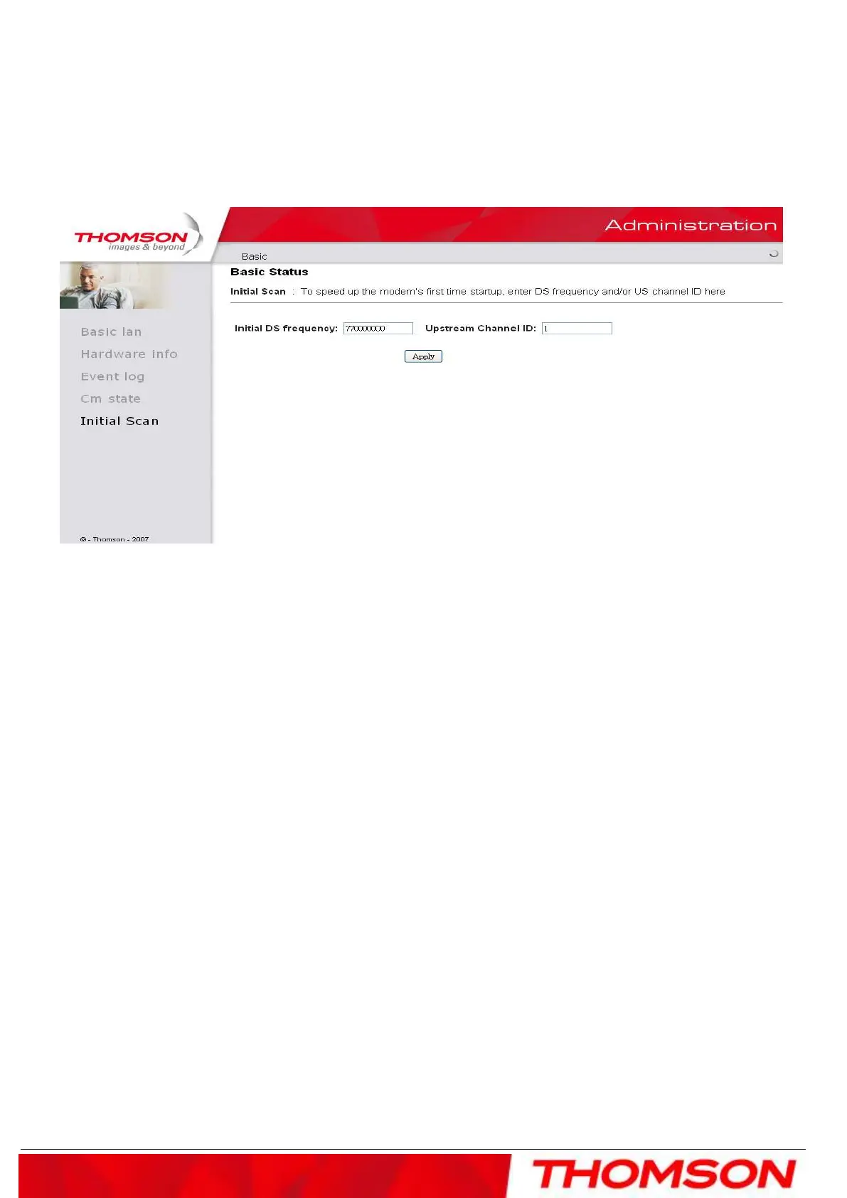 To speed up the modem’s first time startup, enter known downstream frequency and/or upstream channel ID information