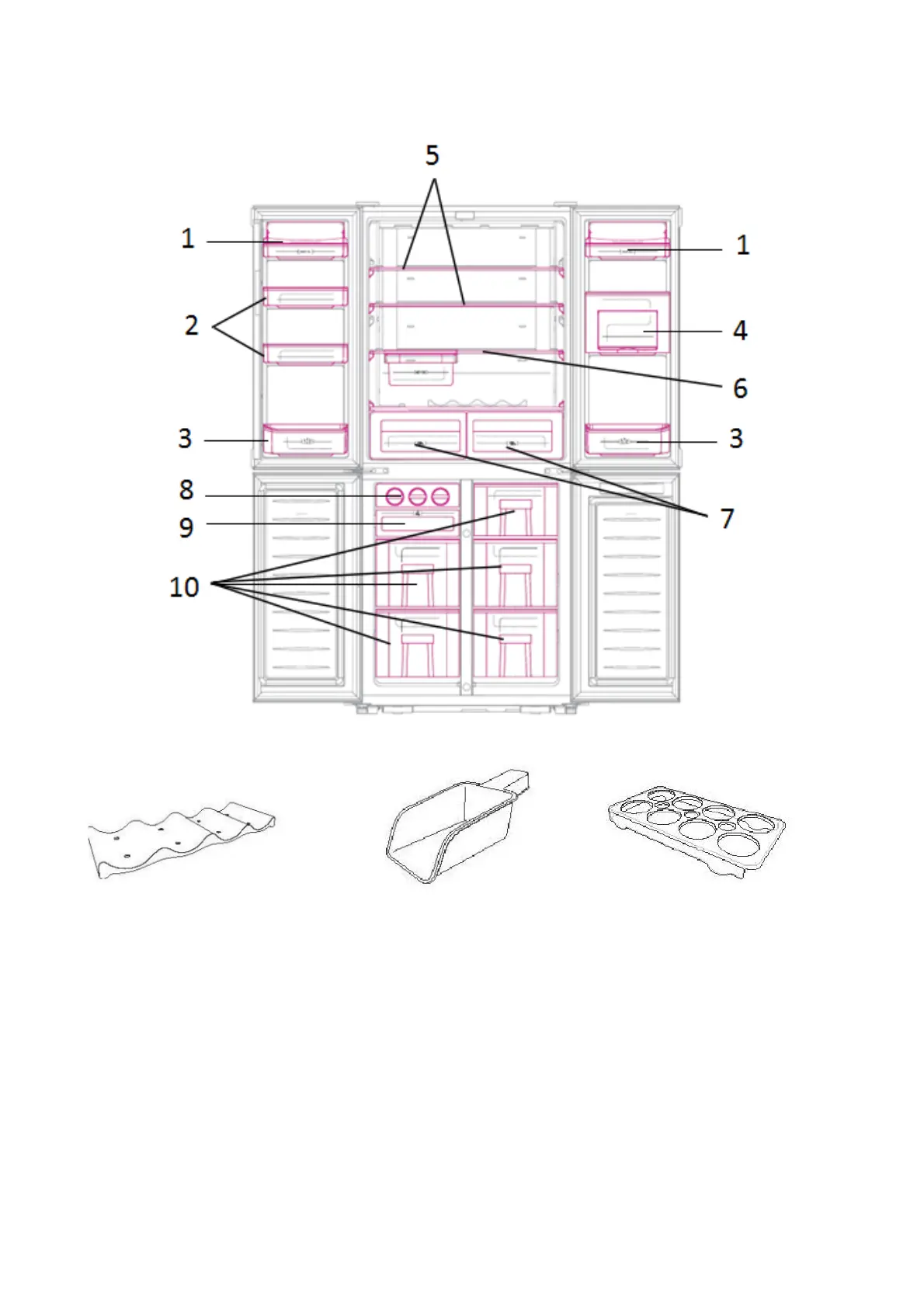 4. Poličkyvedveříchchladničkyspřihrádkous