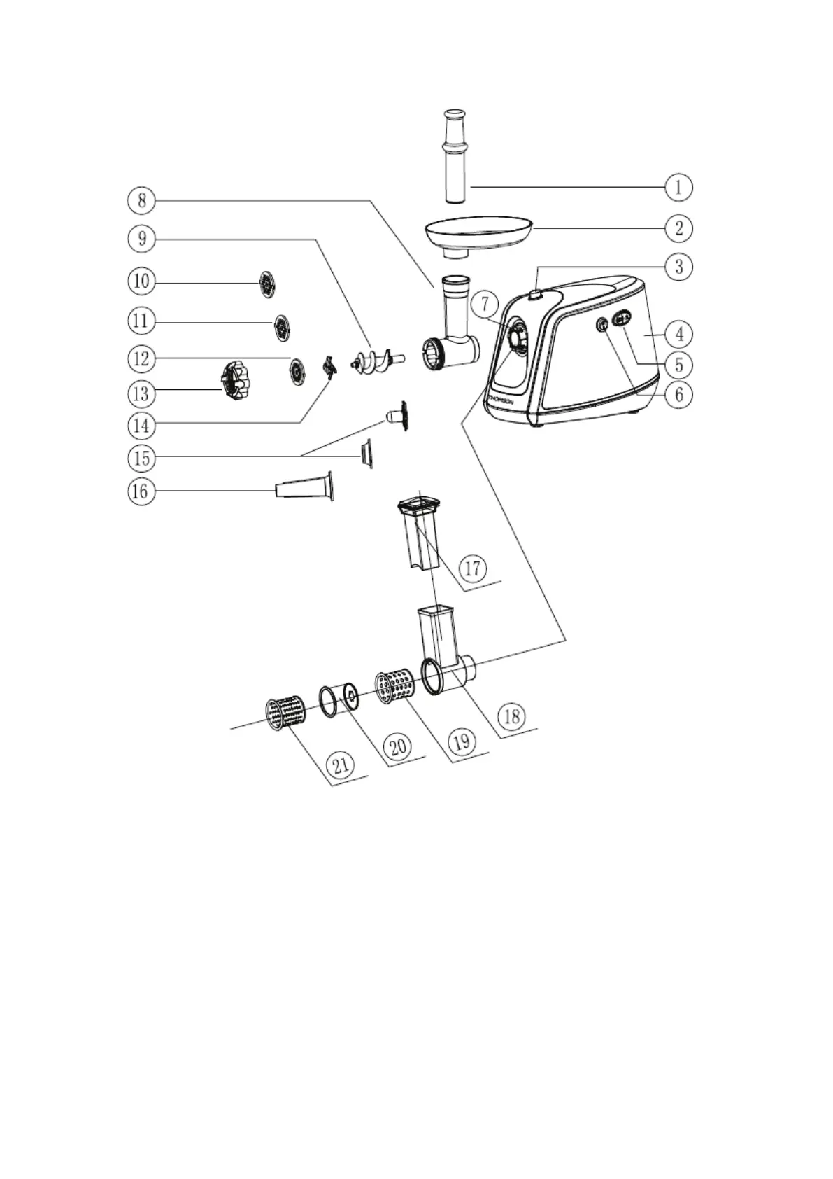 /OFF/ Reverse switch 16. Sausage attachment