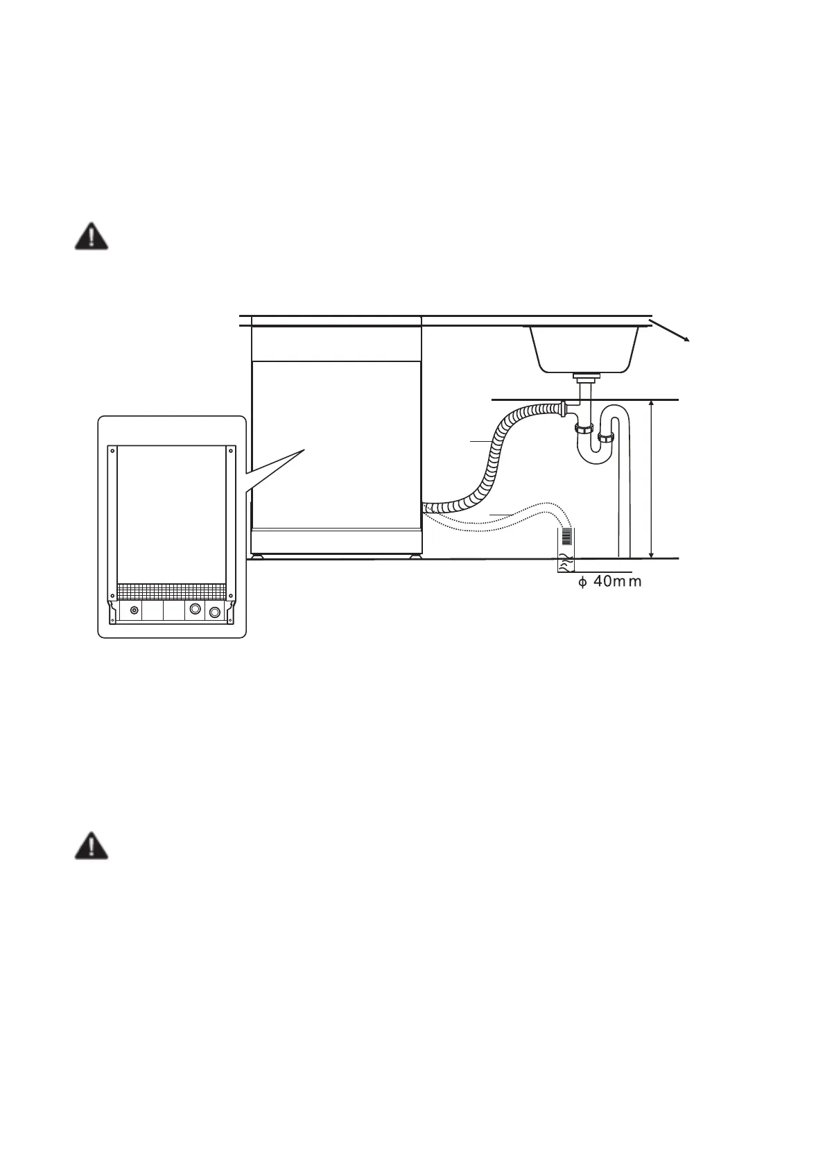 afvoerpijp moet minder dan 1000 mm zijn. Het vrije uiteinde van de slang mag niet in