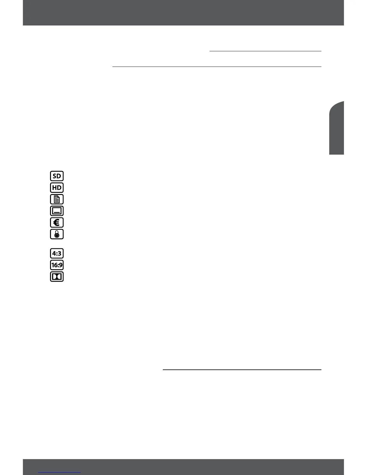 • graphic symbols, displaying the availability of additional services provided by the channel.