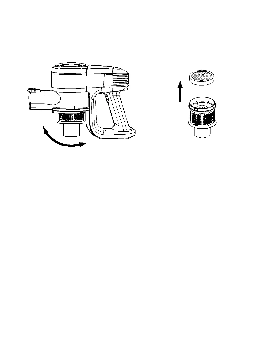 1. Twist dust cup and remove. Twist filter screen and remove. Lift out