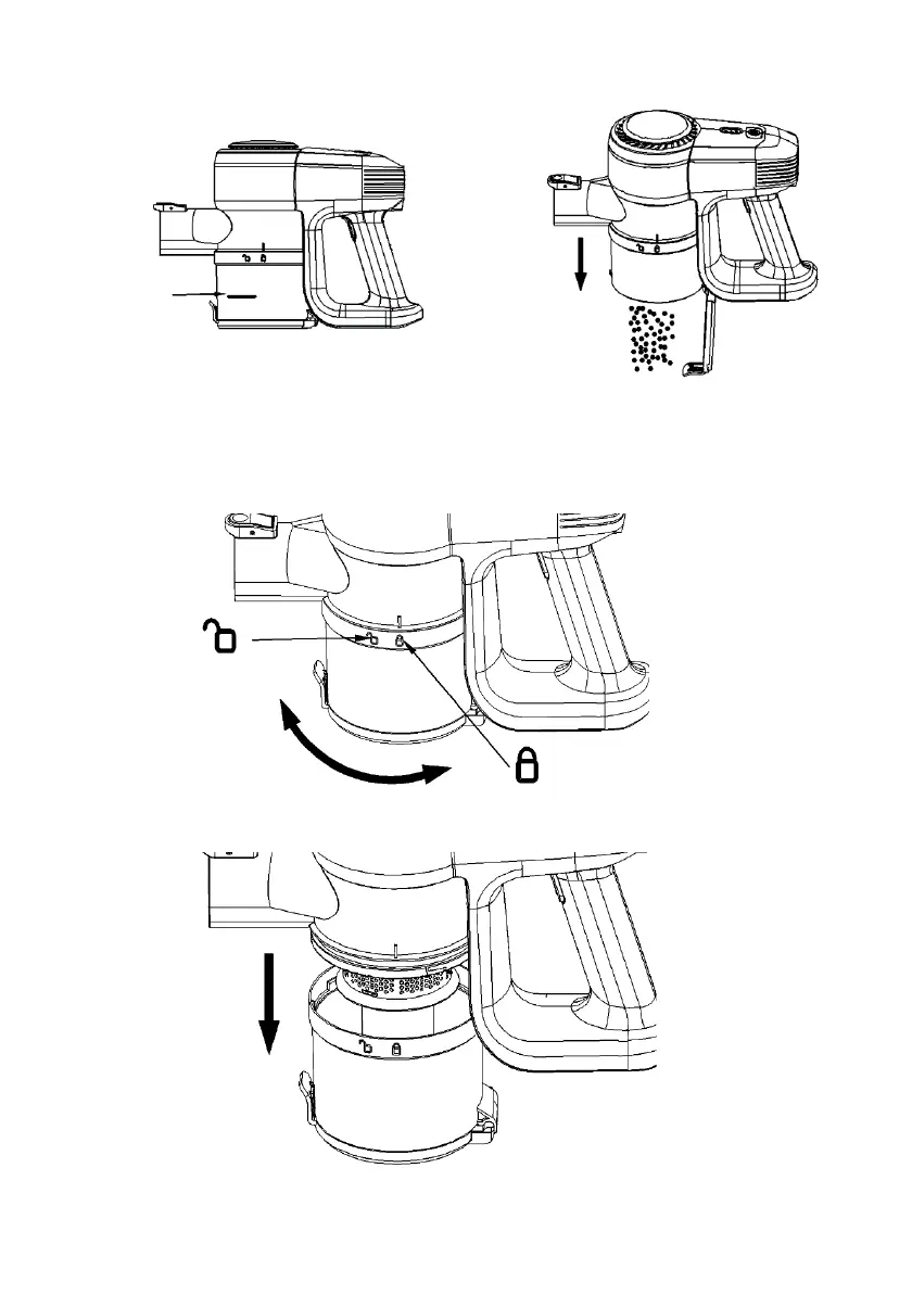 Retire el contenedor de polvo girándolo a la posición de apertura.