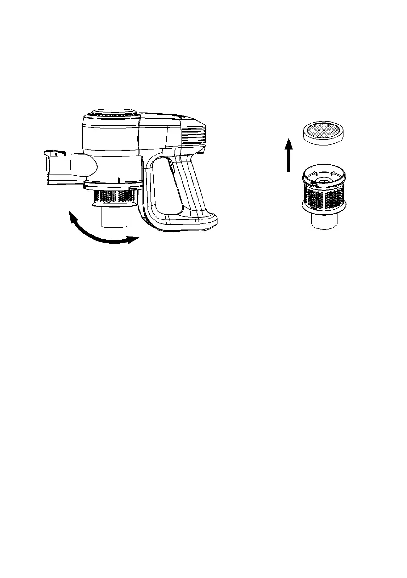 Gire el contenedor de polvo y retírelo. Gire la pantalla del filtro y