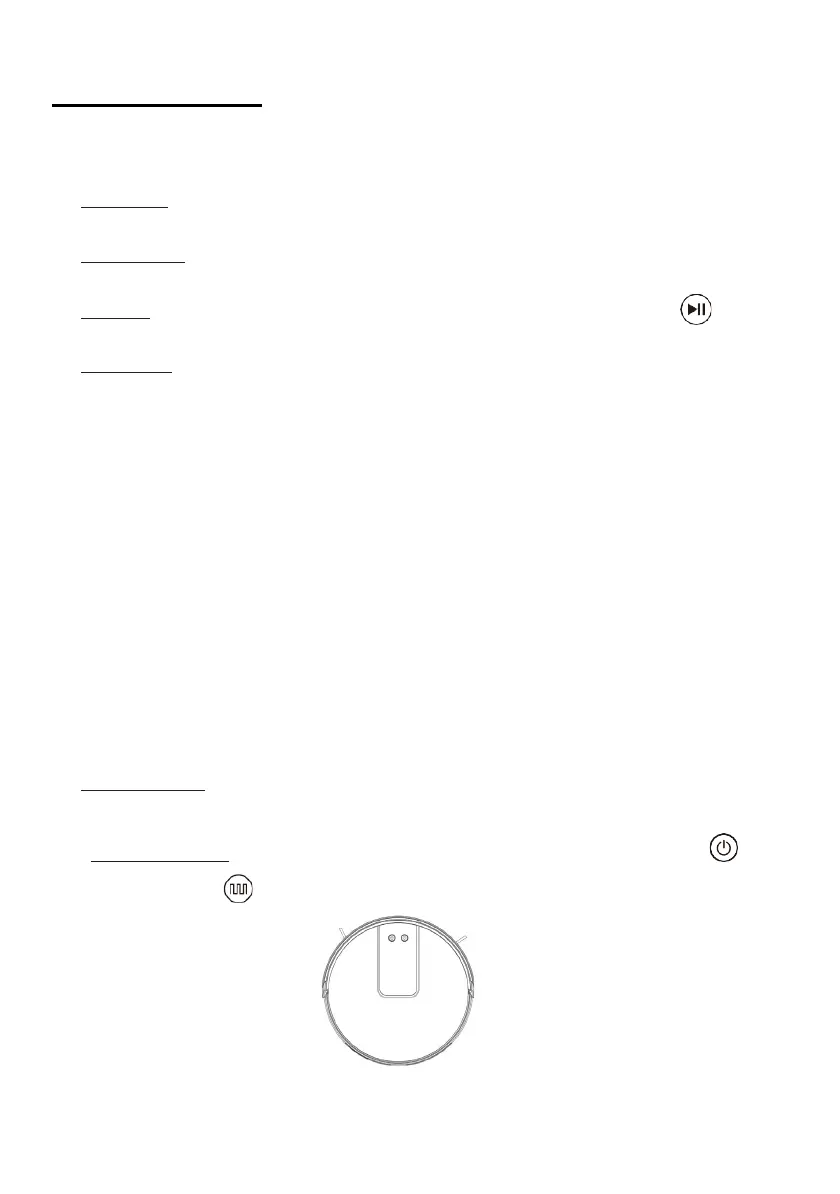 Pause : Press the On / Off button robot on or the Pause button on the